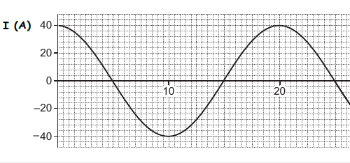 #8. يوضح الشكل المقابل التيار الناتج من دينامو. فإذا تم قياسه بأميتر حراري فإن قراءة المؤشر تكون ………